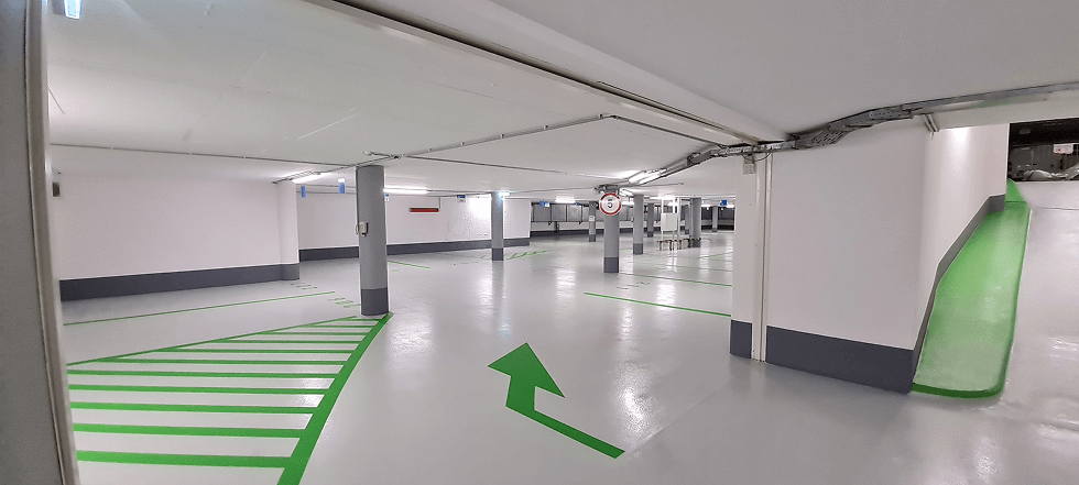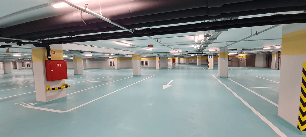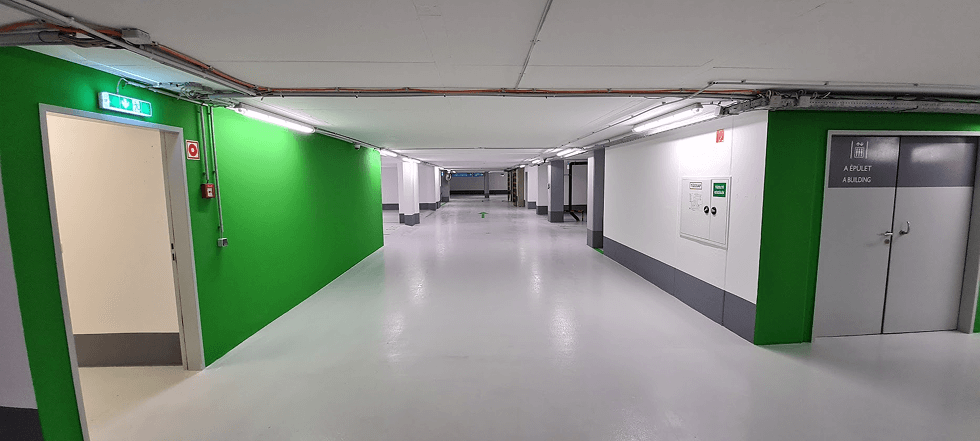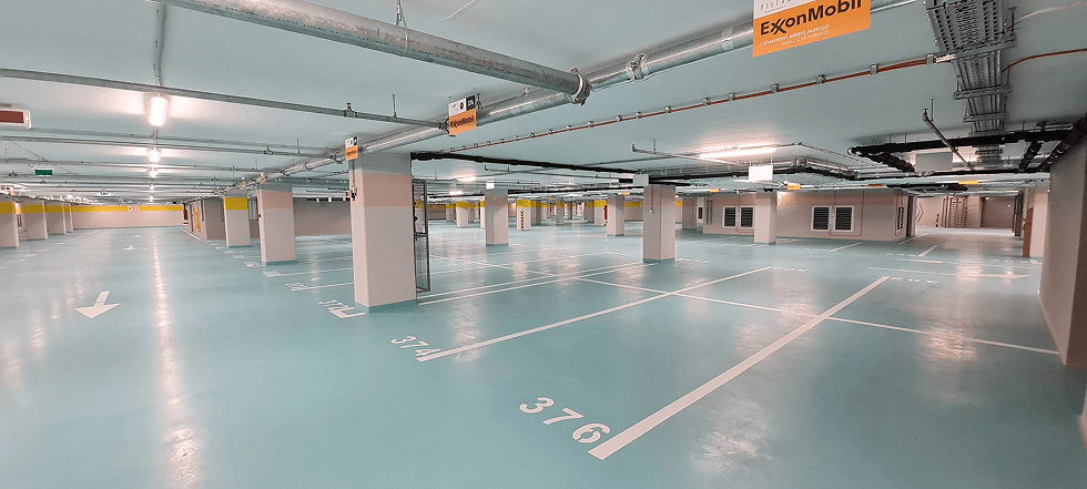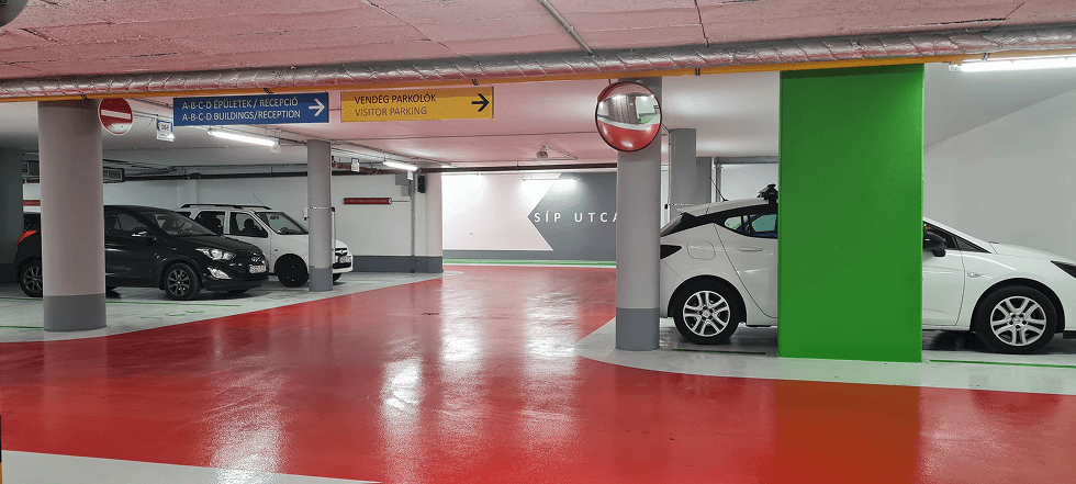 Irodaház mélygarázs festési és műgyantázási munkái